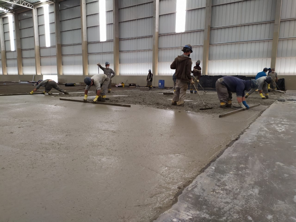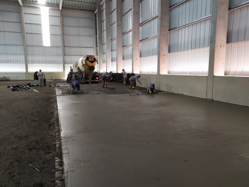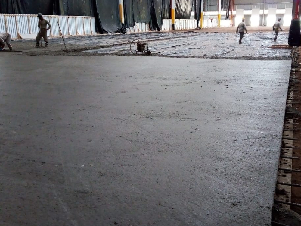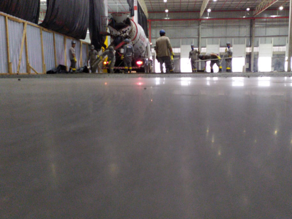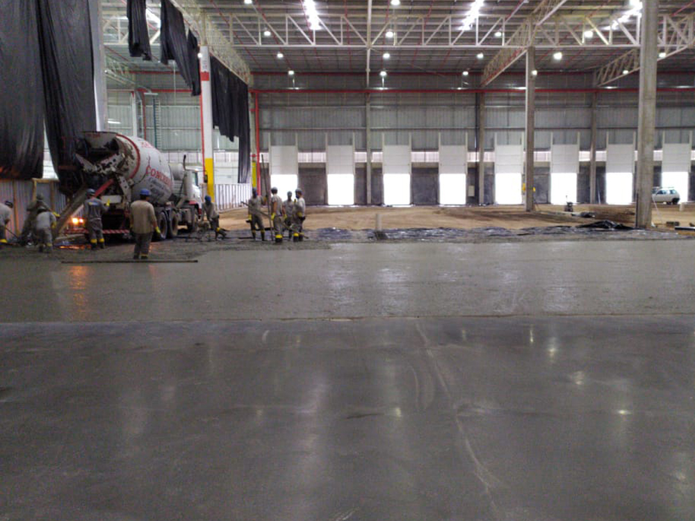 Obra de 3.000,00 m² de piso protendido. Concretagem realizada em um único dia.