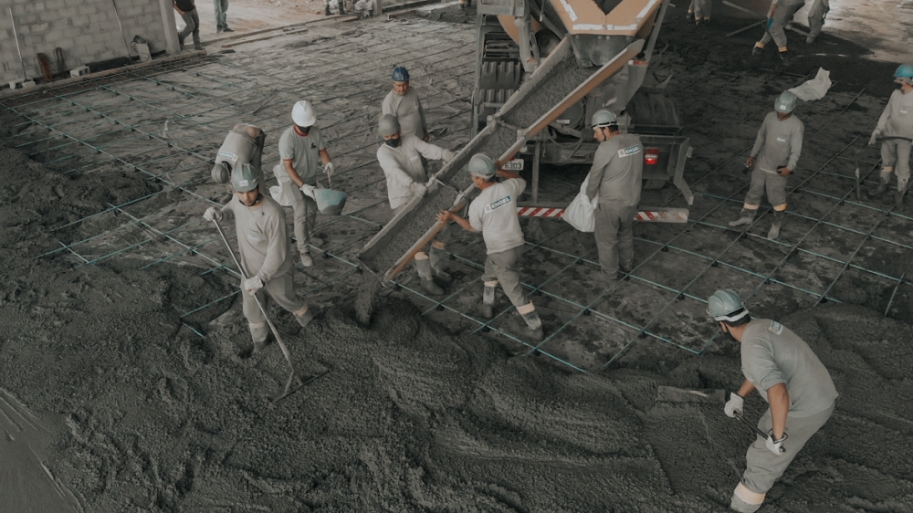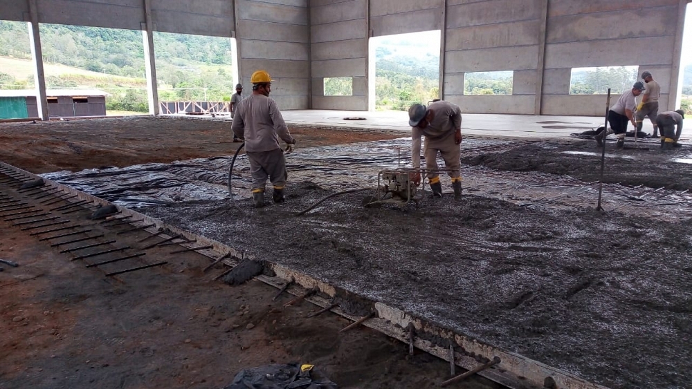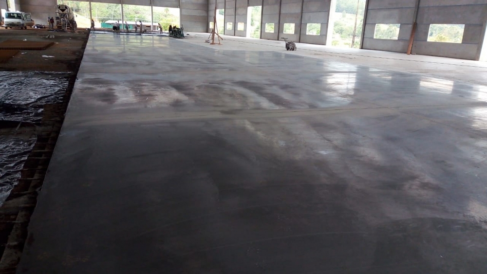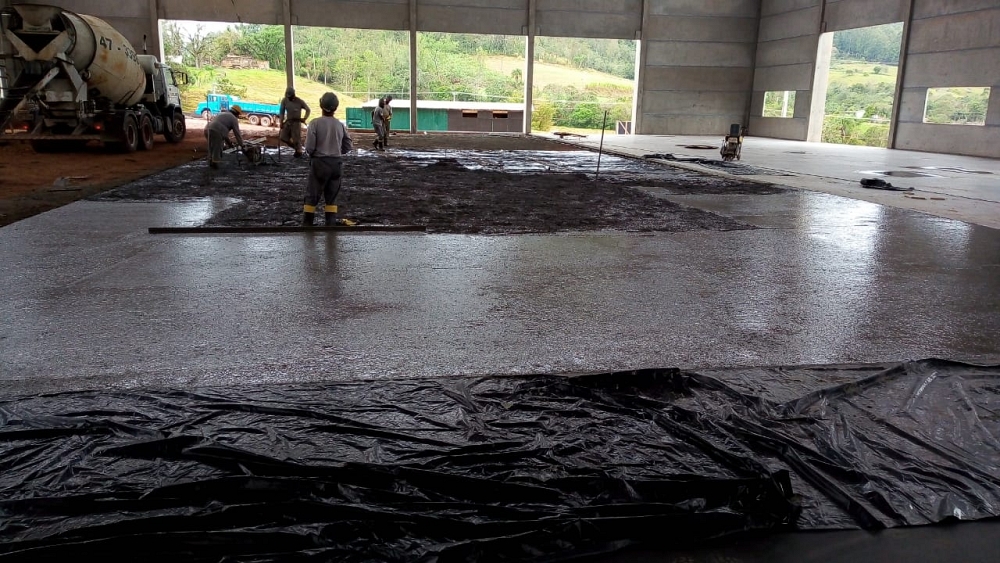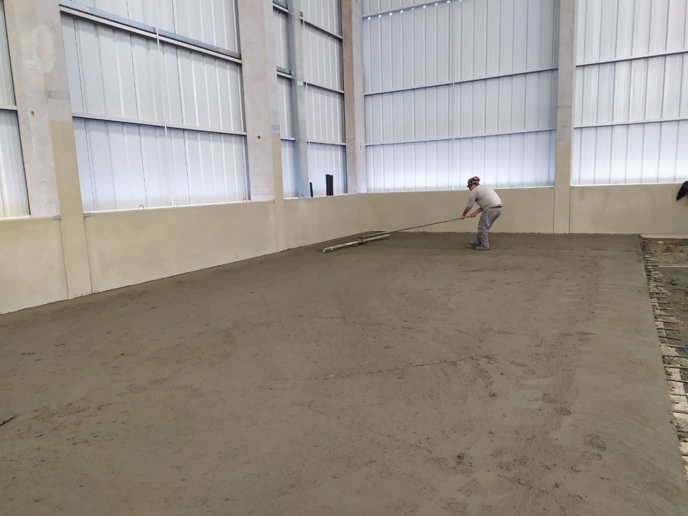 Obra de 3.000,00 m² de piso protendido. Concretagem realizada em um único dia.