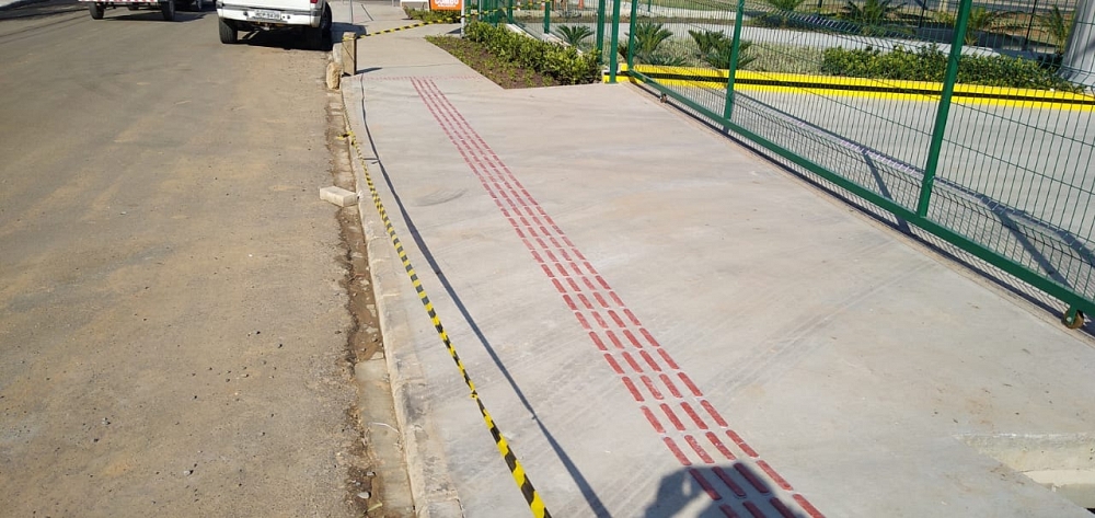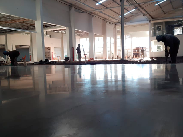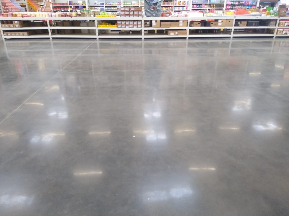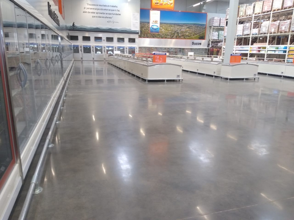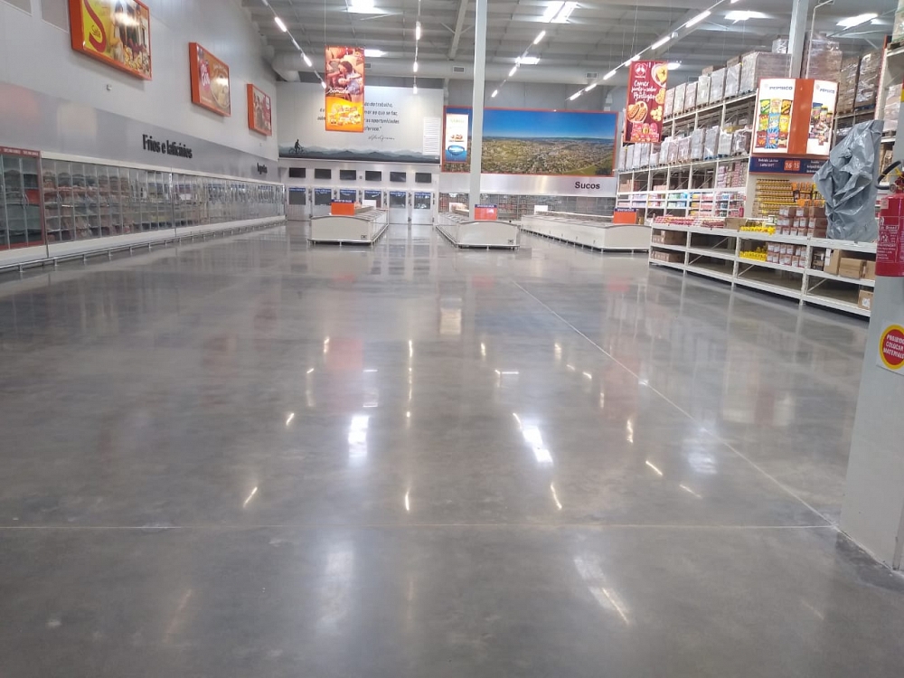 Execução de 8900m² de piso sobre laje, 11500m² de piso sobre solo, 2000m² de calçadas com instalação de piso tátil e 5000m² de lapidação superficial resinada com Engel Selador.