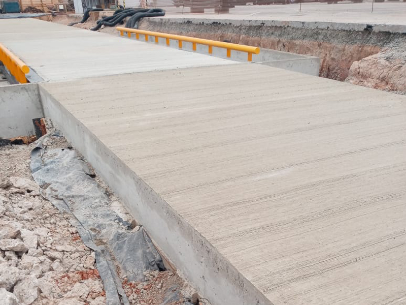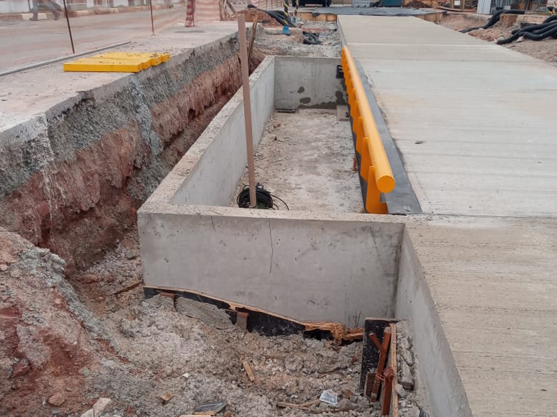 Concretagem de balança rodoviária e duas pistas de ligação com 50m² cada.