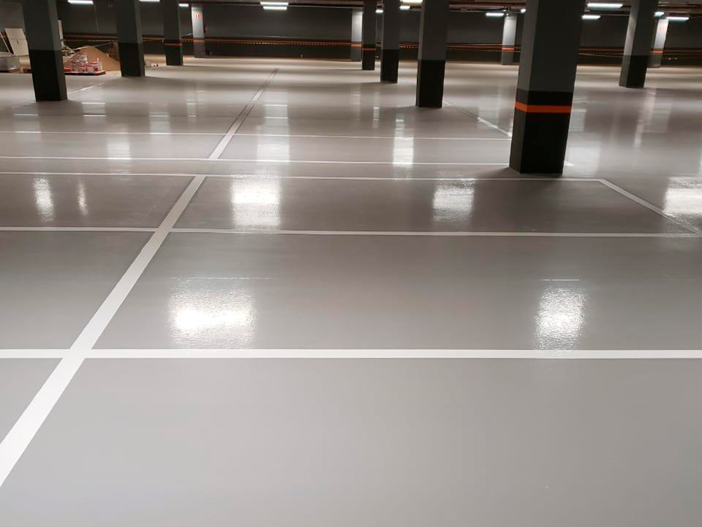 691,65 m² de epóxi autonivelante e 210,54 m² de faixas demarcatórias.