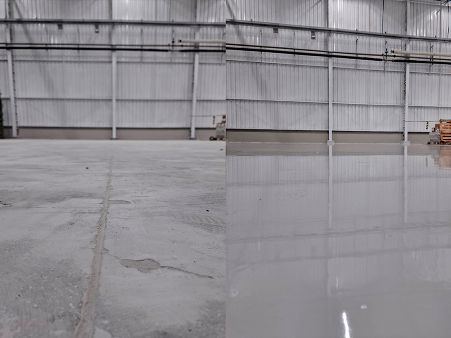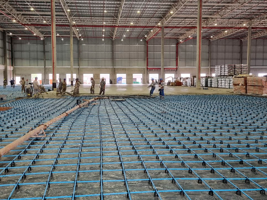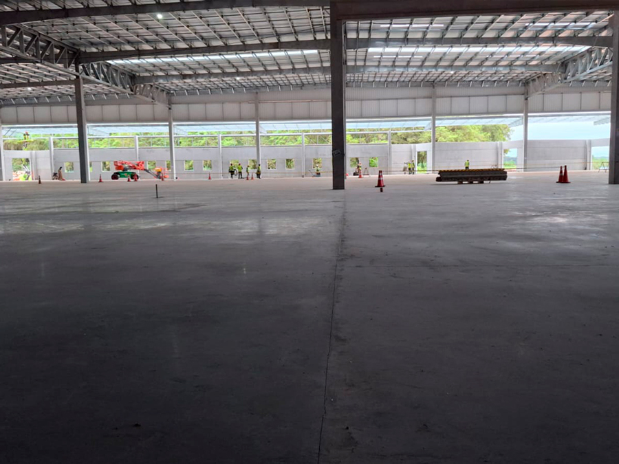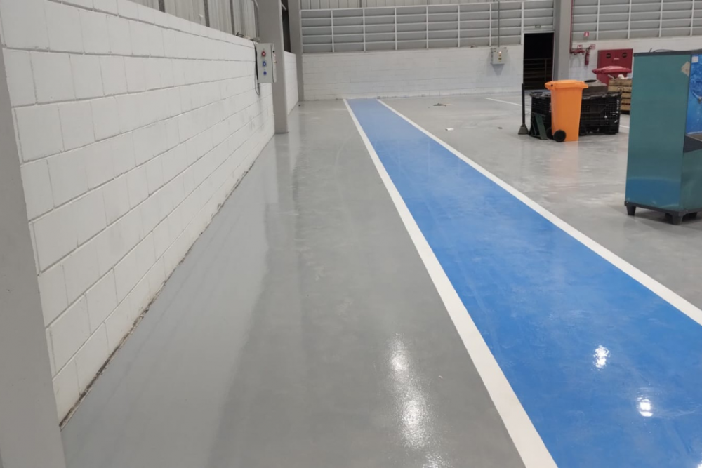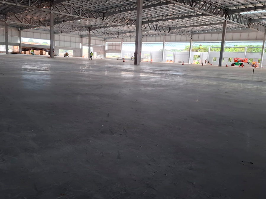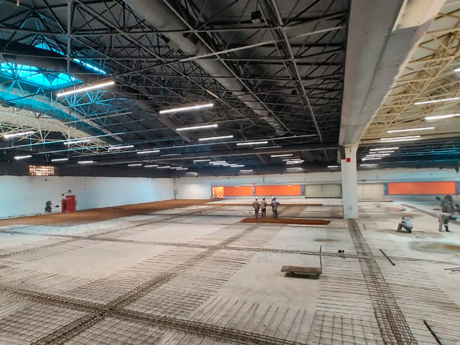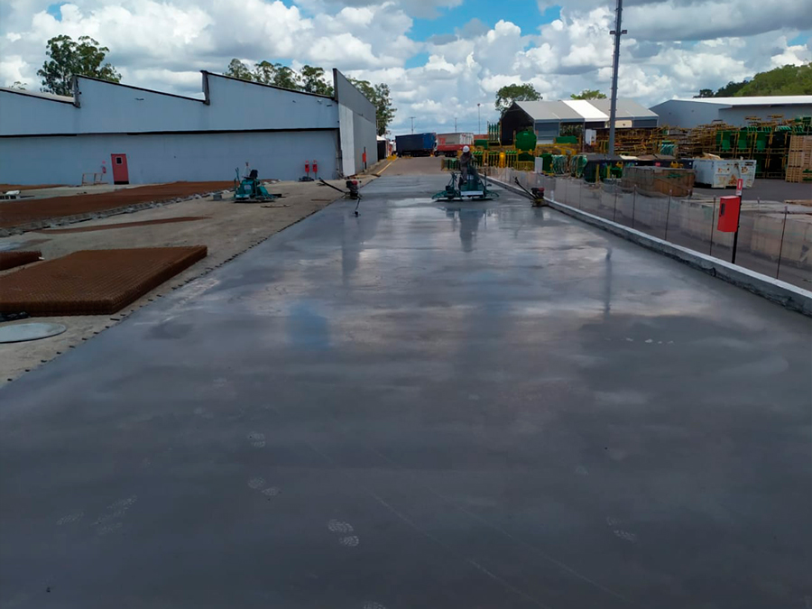 25.000,00 m² de piso industrial apoiado sobre o solo, com adição de fibra de aço e aspersão de agregado.
