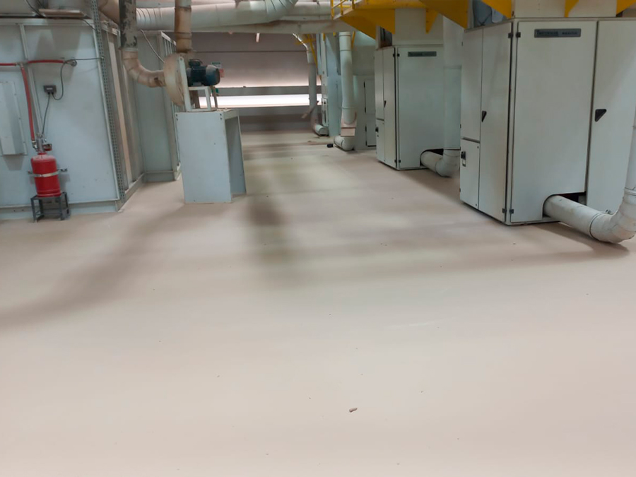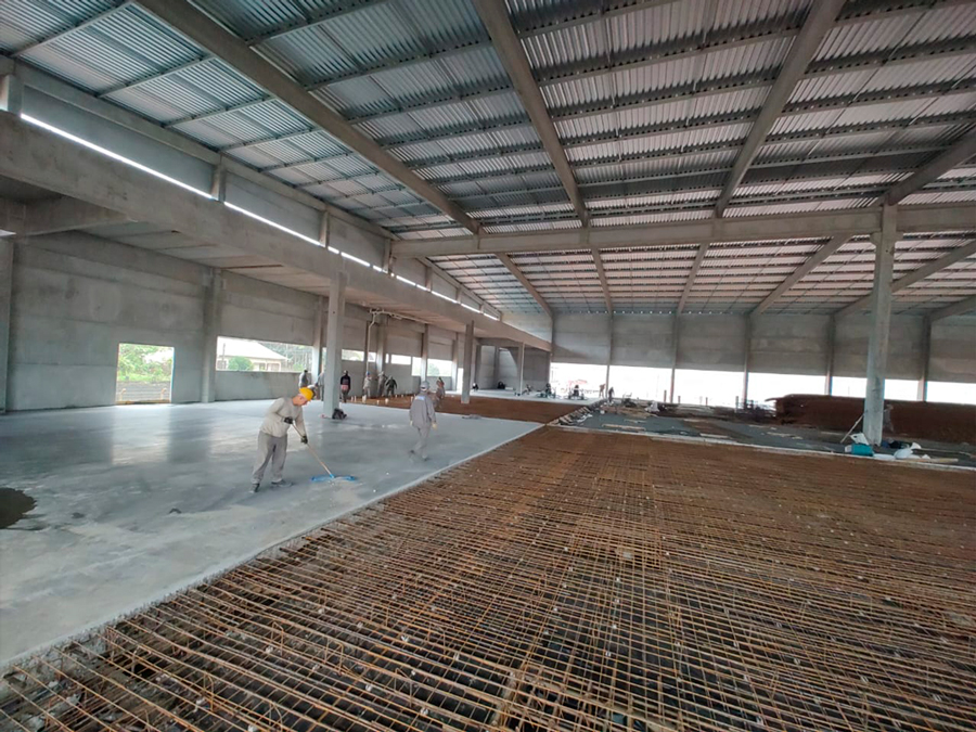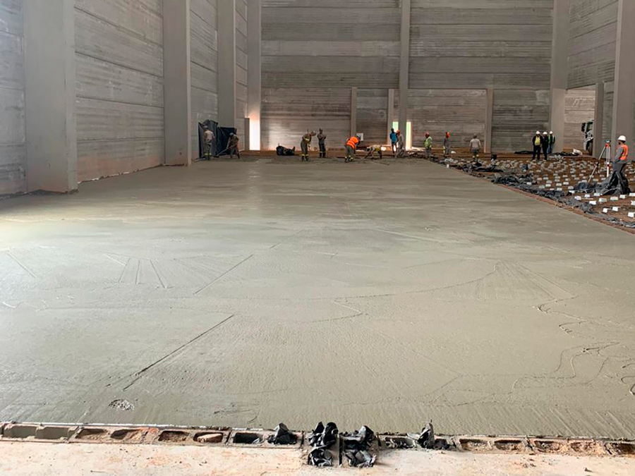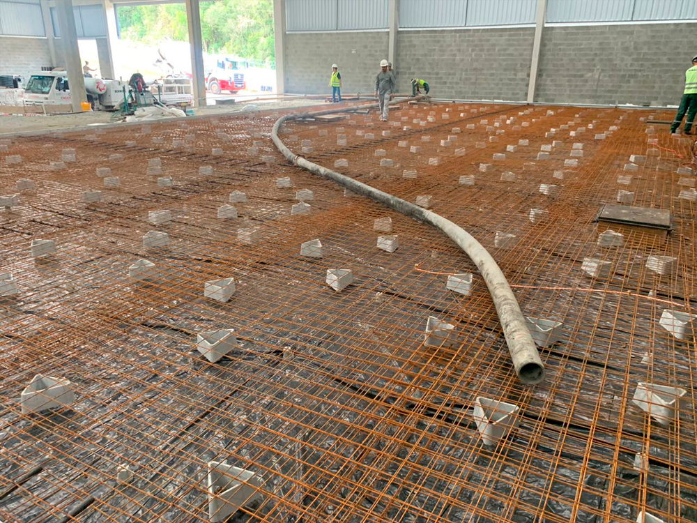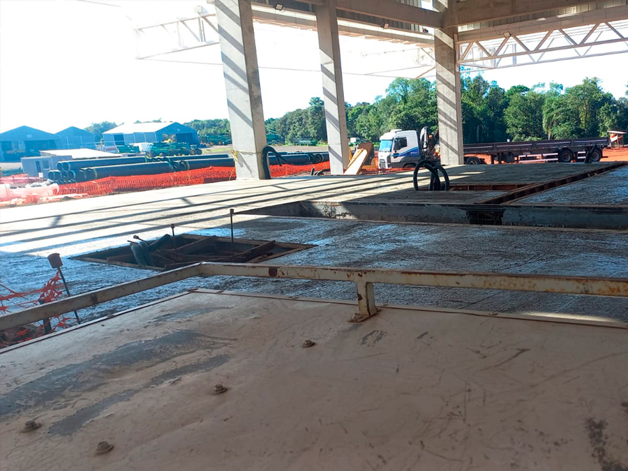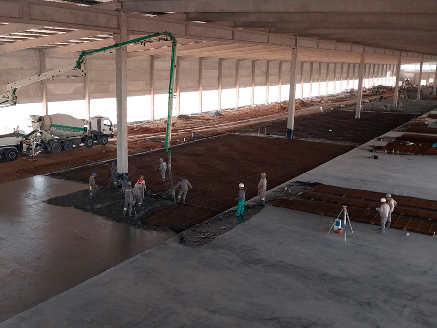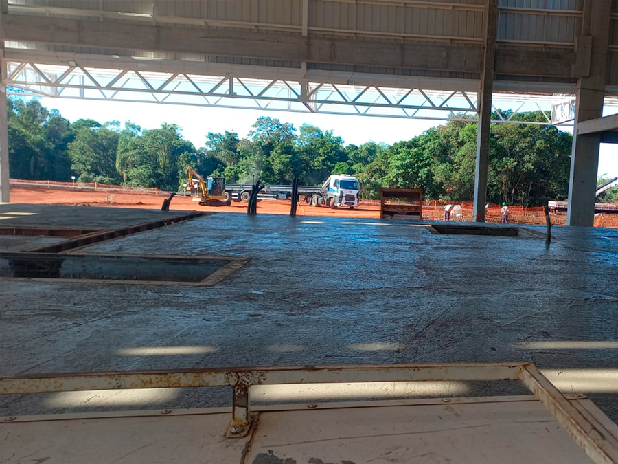 10.936,35m² de piso em concreto apoiado sobre solo. 1.811,80m² de capeamento sobre Steel Deck.