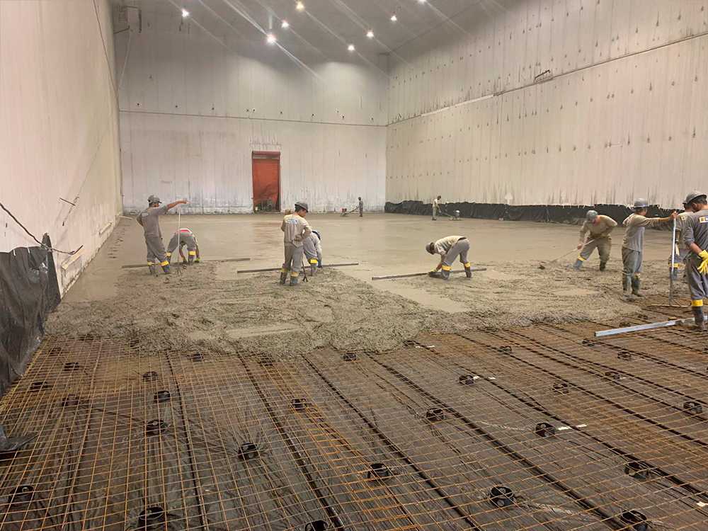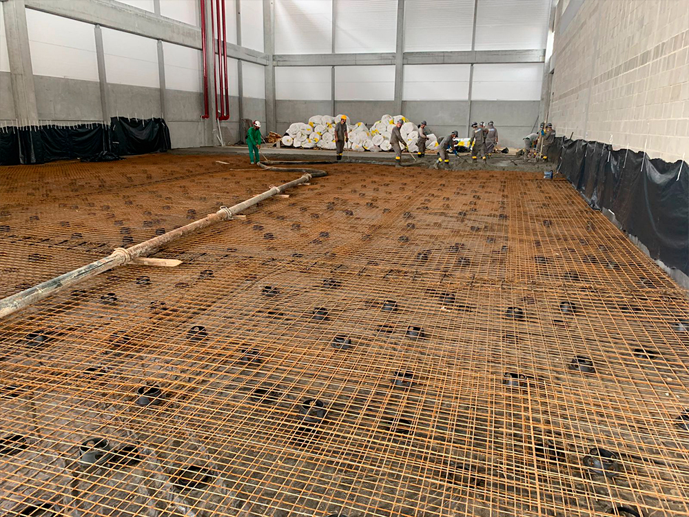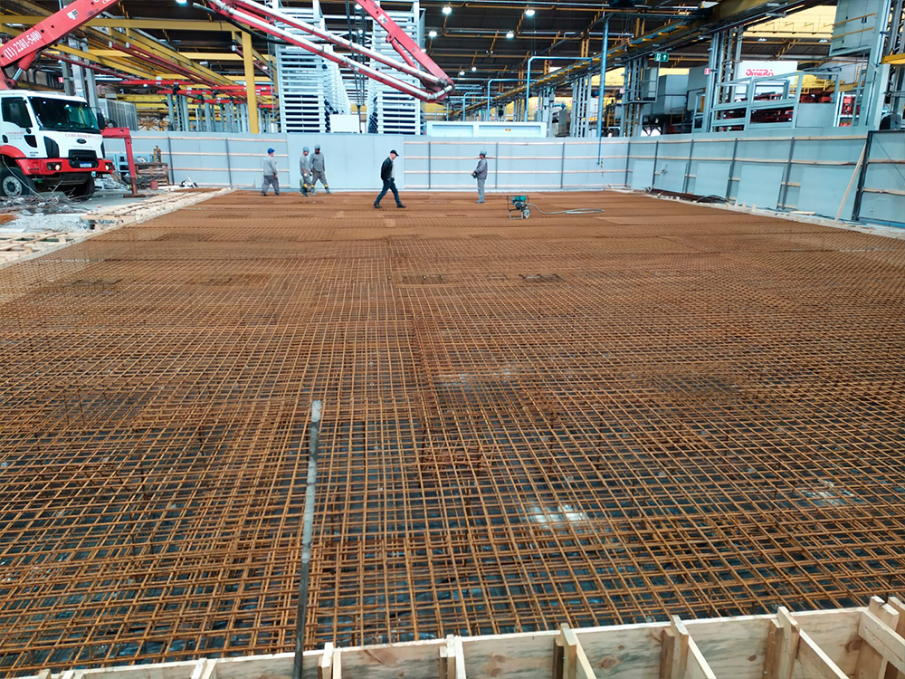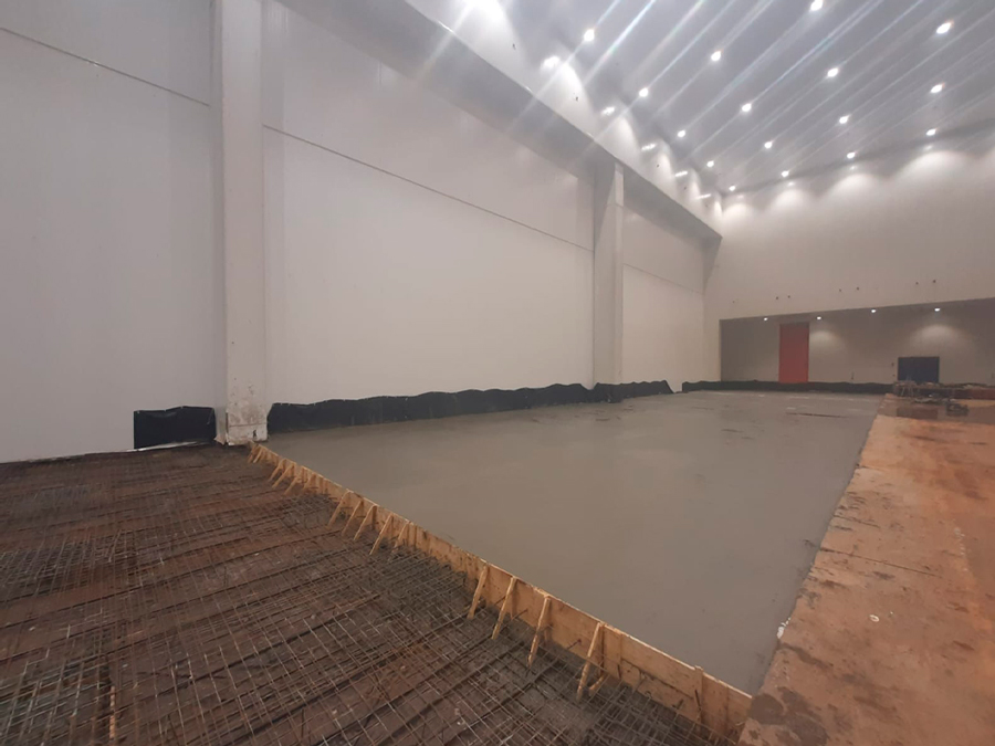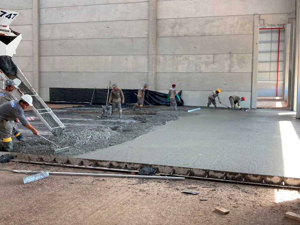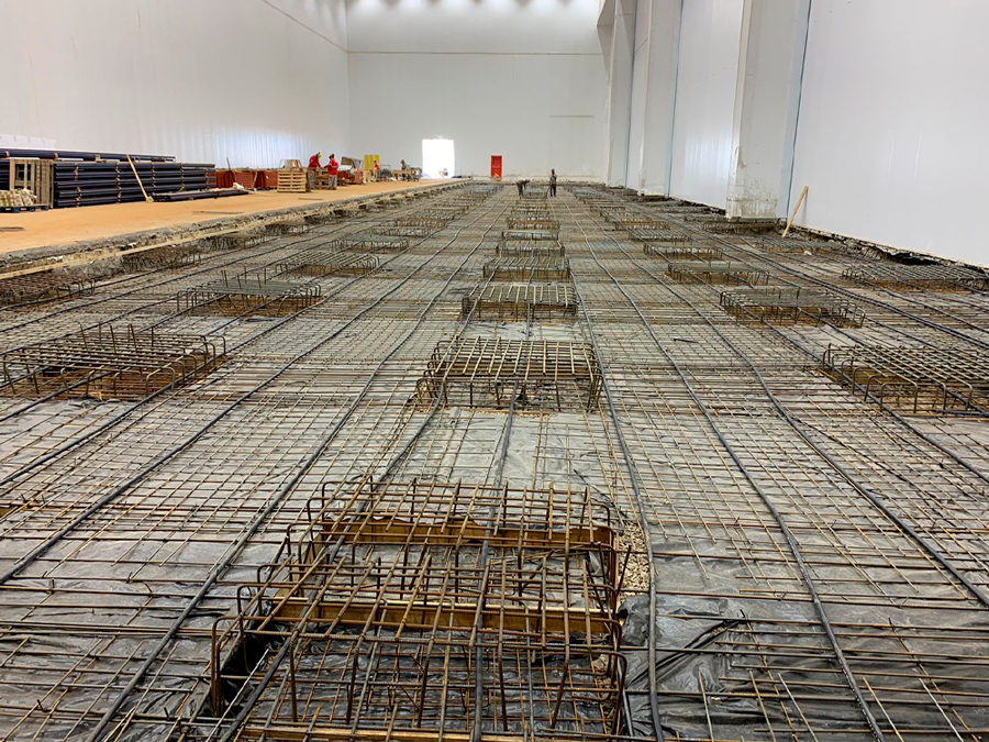 1482,23m² de piso industrial em concreto apoiado sobre o solo com utilização de macrofibra.