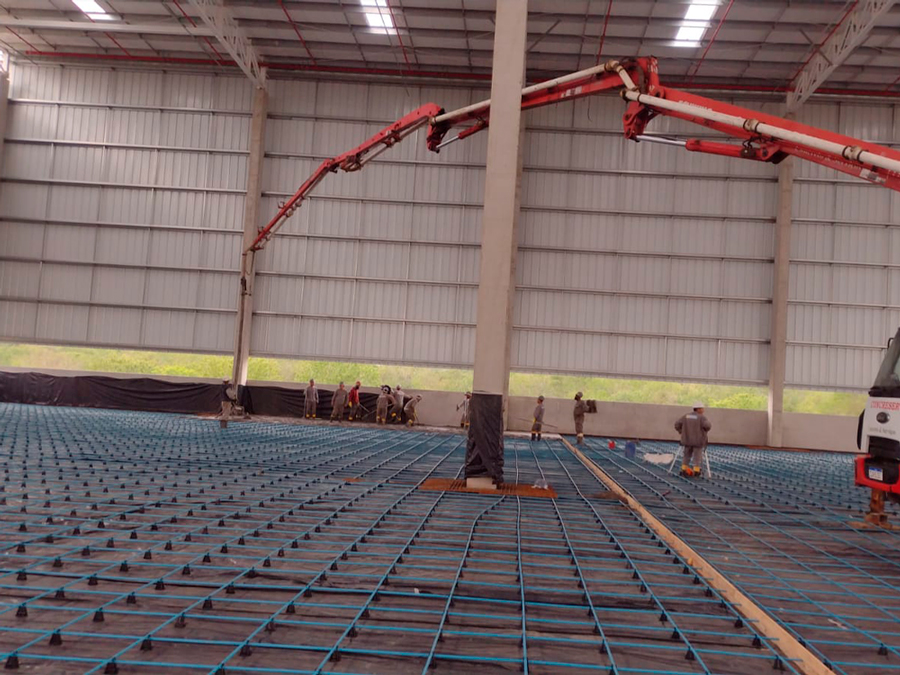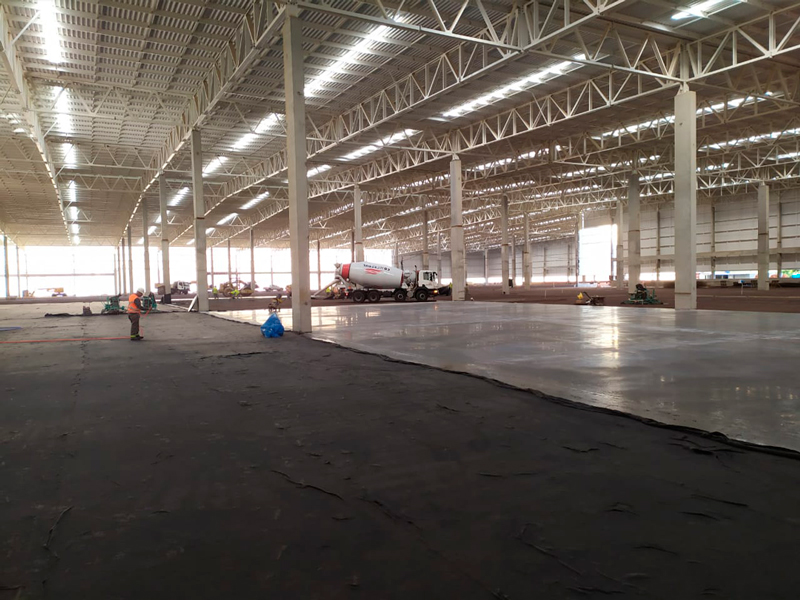8.030,00 m² de piso em concreto com macrofibras sintéticas.