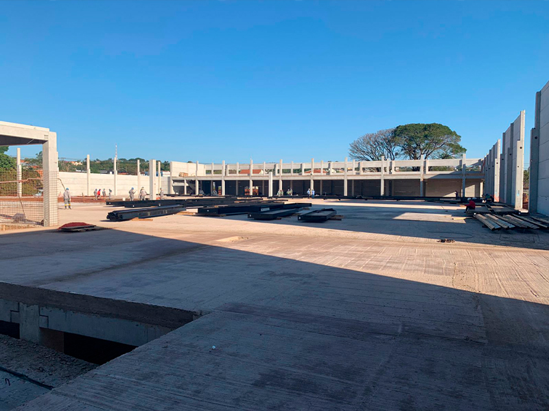 27.233,00 m² de piso protendido e 2.703,00m² de piso apoiado em solo.